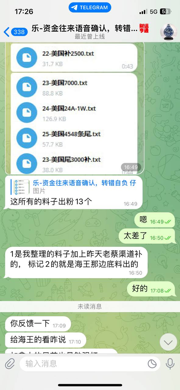 你好 你这5000条料子 我已经测试完了 总共进线10个 包括我这边电销团队激活